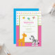 Colorful Dots Jungle Animal Födelsedagsfest inbjudan Starta din party från högerna med vår hedervärda roligt safari födelsedagsinbjudan. Vår roligt och toppen söta safari-inbjudan har den sötaste giraffen och zebra på en roligt blommblått, grönt, rosa och orange ram-Perfekt för en första födelsedag eller vilken födelsedag som helst... Ändra bara födelsedagsinformationen för din speciellare händelse. Fullständigt anpassade av er med er information. ©Godhet och Roligt