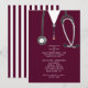 Creative medical school graduation party invites featuring maroon hospital scrubs and stethoscope. Edit text to create unique doctor party invitation.