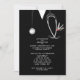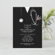 Creative medical school graduation party invites featuring black hospital scrubs, stethoscope and funny Swiss Army knife. Edit text to create your unique doctor party invitation.
