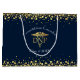 Celebrate the graduation of the new doctor of nursing practice with this elegant DNP theme graduation party design in navy blue and gold!