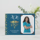 Celebrate the new graduate from doctor of nursing practice school with this gold DNP caduceus graduation announcement in navy blue! Elegant with a vintage photo border and gold confetti accents! Perfect for anyone graduating as a DNP with their degree as a nurse practitioner!