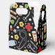 Creative medical-themed party favor box featuring hospital healthcare supplies and flowers for doctor, nurse, physician assistant or other medical professional's birthday, graduation or appreciation celebration.