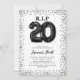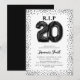 Sunjka dina 20-år med stil med våra unika födelsedagsinbjudningar för vuxna. Med en skarp, vit bakgrund som visar svarta heliumfyllda ballonger som stavas 'RIP till mina tjugoår' ger denna inbjudan en rolig twist på milstolpsfödelsedagar. Med svarta glitterkanter och en användarvänlig textmall för födelsedagsfirande kan du enkelt anpassa denna inbjudan för att återspegla din egen stil och festplaner.