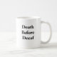 "Döden före Decaf" mugg är ett humoristiskt och djärvt kaffe mugg som stolt deklarerar sitt engagemang för starka, koffeinfria drycker. Mugg är både hållbart och snyggt, och har ett bekvämt handtag för lätt greppning. Oavsett om det används hemma, på kontoret eller som gåva till en kaffeentusiast är "Död före Decaf" mugg säkert ett leende till ansikte för alla som ser det.