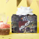 skallen i en Santa hatt, illustration i färg ritar på svartpapper