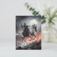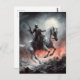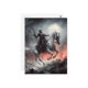 Ett skelett rider en vit häst i ett postapokalyptiskt landskap med makaber AI-genererad konst