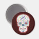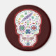 Trippy Day of the dead-skalle, med flera färg, psykedeliskt mönster och märkning.