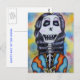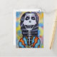 Denna glada och leende Döda dagen skelett är från min ursprungliga färgpenneteckning. Denna skelett är klädd för sin Döda dagen-firande i en starkt färgad schal i orange och blå och håller vita blommor. Bakgrunden har ett akvarellartat utseende med gula, rosa och blå nyanser. Se min butik Art by MAR för fler produkter med denna bild.