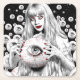 Det här är en vismisk, surrealistisk, etisk och eterisk illustration av en ung flicka på rymden som leker med ballonger med ögon på dem. Det är en firande av fantasi och fri anda och påminner om magi och sagor.
