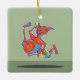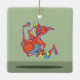 En lustig tecknad illustration av ett monster som spelar dodgeball. Det här söta röda monstret har tagit ett tävlingsjobb och håller två bollar. En rolig design för gymlektion eller ett dopinglag.