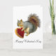 En liten ekorre håller en hjärtformade låda av godis till Valentine kärlek. Skicka ut alla hjärtans dagskort.