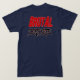 Grafisk logotyp för dödmetall på den marinblåa T-tröja med baksida mot baksida grafiska designer på båda sidor av skjortan.
