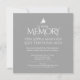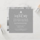 Minnes vården av din älskade med denna minneshögtid 10-års dödsdag inbjudan. En fredlig enkel flygande vit duva grafik på den färgbakgrund du väljer, för närvarande grå. Anpassa med din lokal, och namnet på din älskade och rsvp detaljer och ditt favoritfoto på baksidan. Andra matchande föremål finns tillgängliga. Designad av www.mylittleeden.com