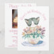 En söt kattunge sitta i en blomkruka finns på dessa inbjudningar till vita och rosa fester. Om du vill redigera texten och fotot klickar du på personlighetsknappen. Design innehåller A.I.