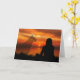 Ett hjärtvärmande och gripande kondoleanskort för ett förlorat husdjur som visar siluetten av en kvinna som tittar ut på en vacker solnedgång och den svaga bilden av en spöklik hundnärvaro som står nära och håller henne sällskap.