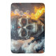 Släpp loss kraften i detta slående konstverk, med en formidabel dödskalle med glödande ögon, beredd för strid mot domedagens krafter. Klädd i snygg svart läder och beväpnad med ett skjutvapen, utstrålar figuren intensitet och motståndskraft. Eldiga flammor, rök och aska virvlar runt i den dramatiska bakgrunden och förstärker känslan av action och fara. Perfekt för samlare som uppskattar djärva, dynamiska bilder och mörka, atmosfäriska teman, kommer detta konstverk garanterat att göra ett kraftfullt intryck i alla miljöer.