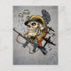 Detta är en verkligt elak bild av en dödskalle eller skelett som röker en cigarr med sin militärhjälm på medan flygplan släpper fallskärmshoppare och bomber runt honom. Rekommenderas för militära veteraner. Konst av den avlidne Al Rio.