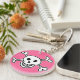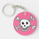 Dödskalle och korsben nyckelring. Komisk nyckelring för barn och vuxna. Söt tjejdesign rosa design.
