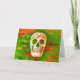 Dödskallehuvud neon grön röd abstrakt popkonst juldag Dag Av De Döda gratulationskort. Färgrik, chic, cool, söt, trendig, unik. Skrämmande, kuslig socker skull, Goth, skelettben. Leta efter matchande produkter i mitt butiksurval. Bild upphovsrätt Marg Seregelyi Photography.