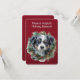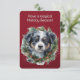 Det bästa sättet att skicka julhälsningar till vänner och familj. En liten valp ansikte bland en julkrans med budskap på baksidan.