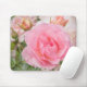 Denna delikat rosa ros kallas "det dofta molnet" och visas här på en dimmig bakgrund av rosenknoppar och löv, en perfekt sommarmedley av rosor och grönt.