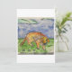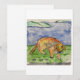 Greeting card with an image of a hand painted dog carrying a rock on it.