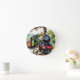 A nostalgic scene of a dog greeting the arrival of a green steam train.