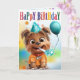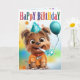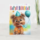 Cute Terrier in Party Hat with Horn, Celebrates a Birthday.