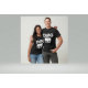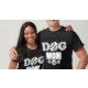 Fira glädjen av att vara en stolt hundmamma med denna djärva och lekfulla matchande t-shirt-design. Grafiken har frasen ”DOG MOM” i krispiga vita bokstäver, med en charmig twist—”O”:et i DOG är ersatt med en söt ben-ikon, och två tassavtryck sitter sött under ordet MOM. Den högkontrastiga svart-vita paletten får designen att sticka ut, ger den en ren, modern utseende som syns i foton och i verkligheten.
