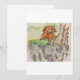 Greeting card with an image of a hand painted dog on top of a hill on it.
