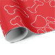 Dog paws and bones. White pattern on red background. Custom gift wrapping paper for dog lovers and their dogs.