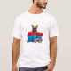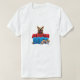 DOG T-SHIRT with adorable puppy illustrations, colorful bone-shaped letters, cute puppies of different breeds, paw prints trail, playful design, bright primary colors, family-friendly"