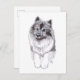 Bläckteckning i svart, vitt och gråskalor av en Keeshond.