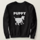Doggy spelar en mänsklig marionett för en mänsklig lång ärmad tröja