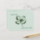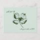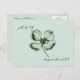 För bröllop omfattar denna samling av Dogwood-Blommar det här Spara vykortet för datum som innehåller en teckning av en perfekt Dogwood-blommar mörk grönt på en blek, myntbakgrund. I motsatt riktning, en mall för ditt meddelande med plats för en personlig anteckning.