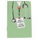 Doktor helgdag presentväska med sjukhusskrubbar. Så här anpassar du redigeringstexten för att lägga till namn.