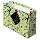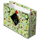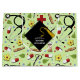 Kreativ doktor studenten presentsäck med medicinska förnödenheter, blommor och klassisk svart och guld studentmössa. Redigera text om du vill lägga till namn i läkarexamen.
