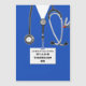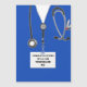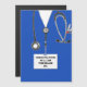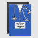 Kreativets medicinska studenten-kortmall för doktor student med sjukhusskrubbar och lustig schweizisk armé knivar. Om du vill anpassa redigeringstexten för att lägga till läkarens namn.