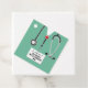Unik studentfest eller märkre till doktor student med sjukhusskrubbar. Om du vill anpassa redigeringstexten för att lägga till namn eller anpassa den på annat sätt.