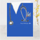 Ett medicinskt studenten-kort med sjukhusdiskar med en schweizisk armé knivar i fickan. Om du vill anpassa dig redigerar du texten för att lägga till doktor namn.