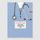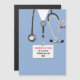 Kreativt kortmall för medicinskola examen för läkare, med sjukhusröjor och rolig schweizisk armékniv. För att anpassa, redigera texten för att lägga till läkarens namn.