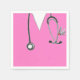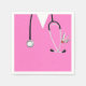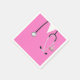 Kreativets medicinska skolblöjor i studenten eller doktor födelsedagsfest med rosa sjukhusskrubbar och lustig schweizisk armé knivar i fickan.