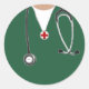 Kuvertförseglingar i kreativ studenten, partimärken eller presentklistermärken för läkarutbildning med grönt sjukhusskrubbar och stetoskop.