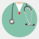 Kreativa medicinska kuvertförseglingar, festfavoritsetiketter eller presentklistermärken för läkare eller sjuksköterska som avslutar sina studier med sjukhusstäduniform.