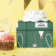 Kreativets matematiska presentpackning för doktor med unika grönt-sjukhusskrubbar och illustration av stetoskop. Redigera text om du vill lägga till läkarens namn.
