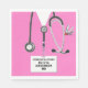 Medicinsk studentfest-blöjor med rosa sjukhusskrubbar, stetoskop och knivar från den schweiziska armén. Om du vill anpassa redigeringstexten till att lägga till doktor namn.