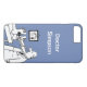 Lägg till ditt val av namn. Doktorn använder sitt stetoskop på fötterna av en patient. Rolig tecknad film med blå bakgrund. Telefonfodral för en läkare, läkare eller allmänläkare