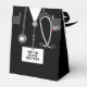 Kreativ medicinsk design för doktorsavslutning eller födelsedagsfest, med svarta sjukhusskjortor. Redigera texten för att anpassa den till din favoritläkare.