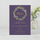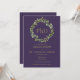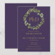 Med en chic botanisk grön krans och klassisk guldtypografi på en lila bakgrund kan denna eleganta inbjudan till doktorsgrads firande anpassas med din examenskandidats namn och info. Designad av Thisisnotme