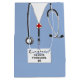Doktorgradueringspresentväska med sjukhusstädkläder och stetoskopkonst. Redigera texten för att lägga till läkarens, läkarassistentens eller sjuksköterskans namn.
